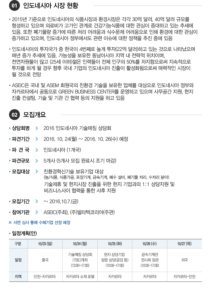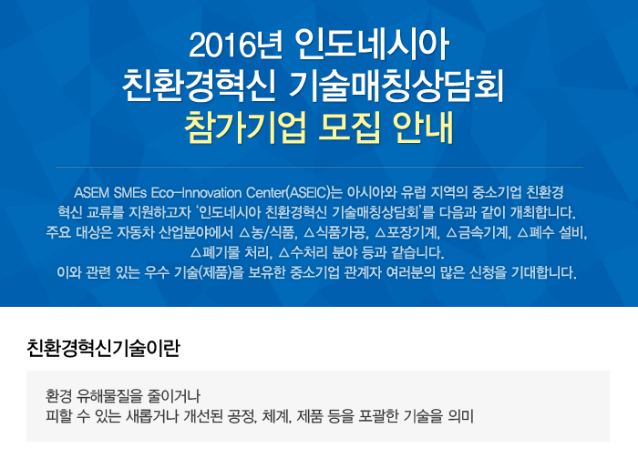 2016년 인도네시아 친환경혁신 기술매칭상담회 참가기업 모집 안내