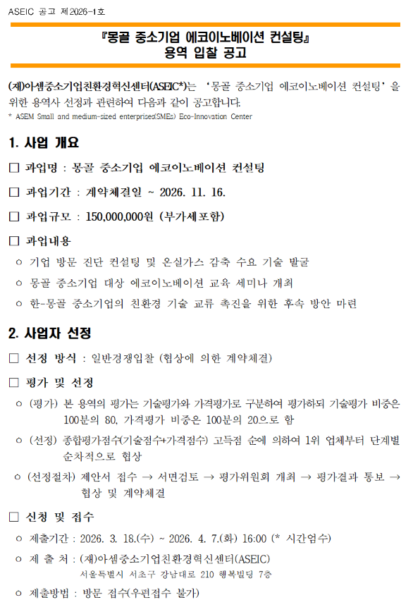 1. 입찰공고_몽골 중소기업 에코이노베이션 컨설팅.hwp