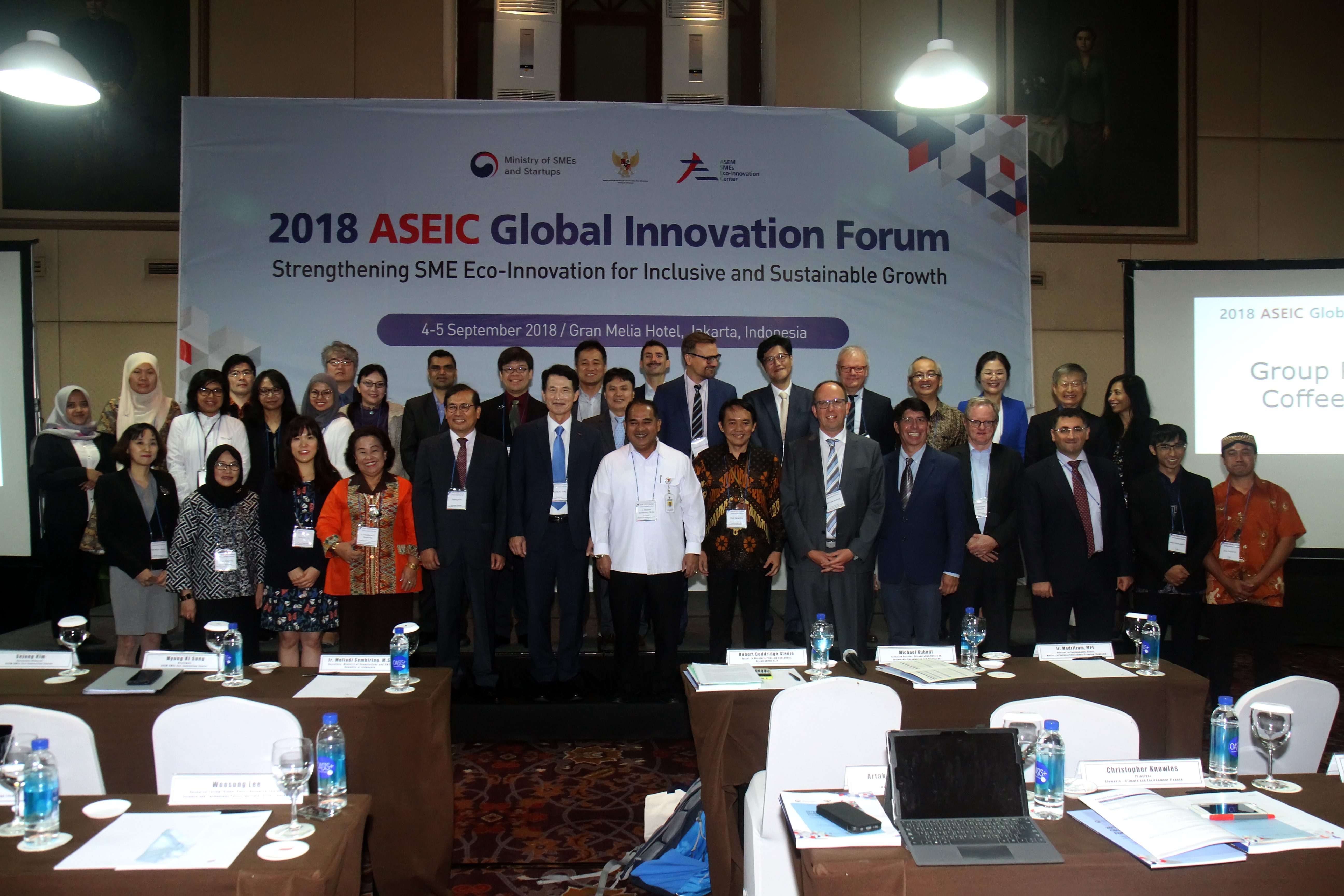 □ (재)아셈중소기업친환경혁신센터(ASEIC, 이사장 성명기)는 한국 중소벤처기업부와 인도네시아 협동조합 및 중소기업부(이하 중기부)와 함께 2018년 9월 4일부터 6일까지 인도네시아 자카르타에서 “2018 ASEIC 글로벌 이노베이션 컨퍼런스”를 개최했다.