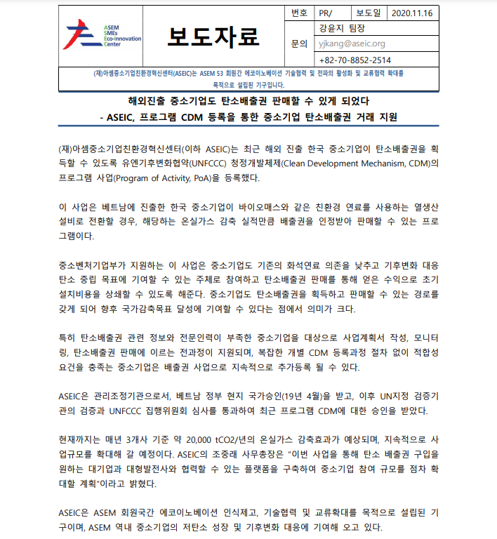 (최종)ASEIC_보도자료_ 해외진출 중소기업도 탄소배출권 판매.docx