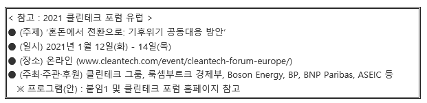 (공고) '2021 클린테크 포럼 유럽' 참가 기업 모집 (기간연장) 16 Dec 2020