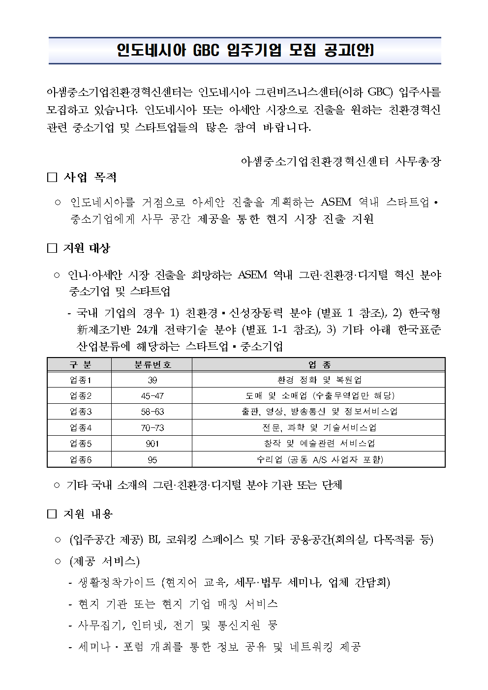 인도네시아 GBC 입주기업 모집 공고