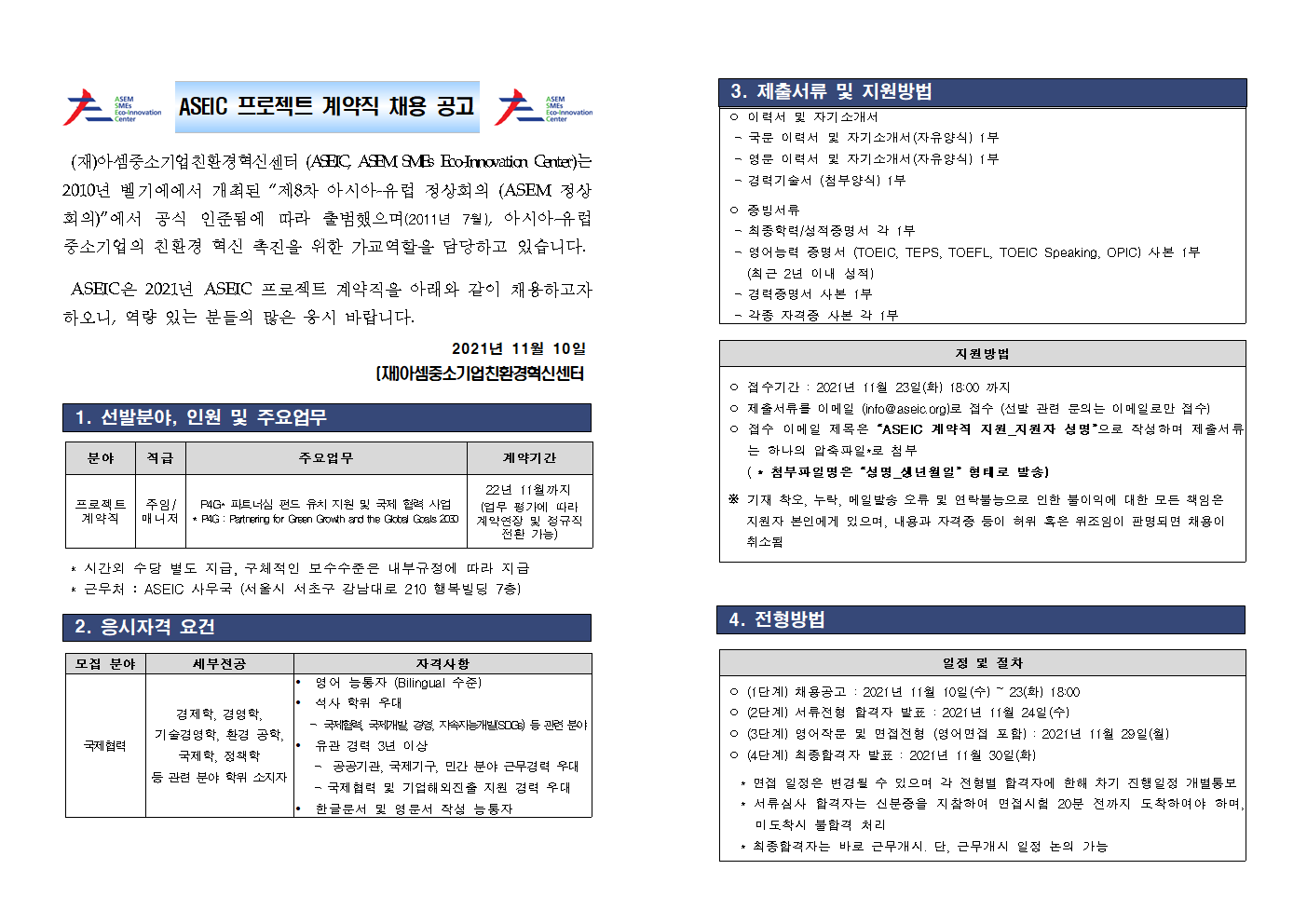 2021년 ASEIC 프로젝트 계약직 채용