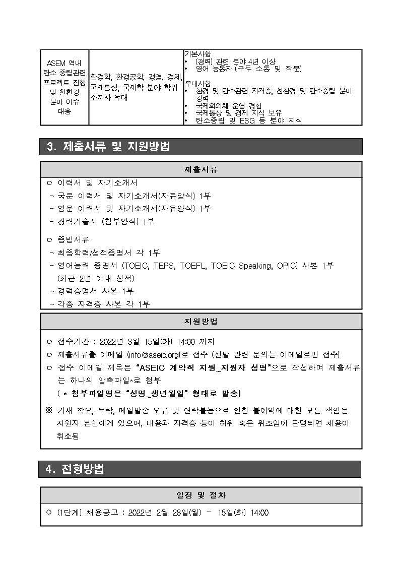 (ASEIC) 프로젝트 계약직(국제협력 사업 / 탄소중립 관련 사업 운영) 모집
