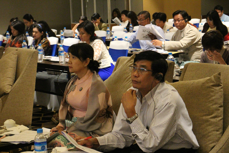 ? (재)아셈중소기업친환경혁신센터(이하 ASEIC, 이사장 성명기)는 10월 18일에서 19일 이틀간 미얀마 양곤의 노보텔 호텔에서 현지 에코이노베이션 저변 확대를 위한 역량강화 세미나를 개최하였다. 이 번 역량강화 세미나는 현지 사전 수요조사에 따라 에코라벨링 제도도입을 위한 정책 공유, 그리고 섬유 및 식품 분야 중소기업의 인식제고를 주 목적으로 개최되었다.